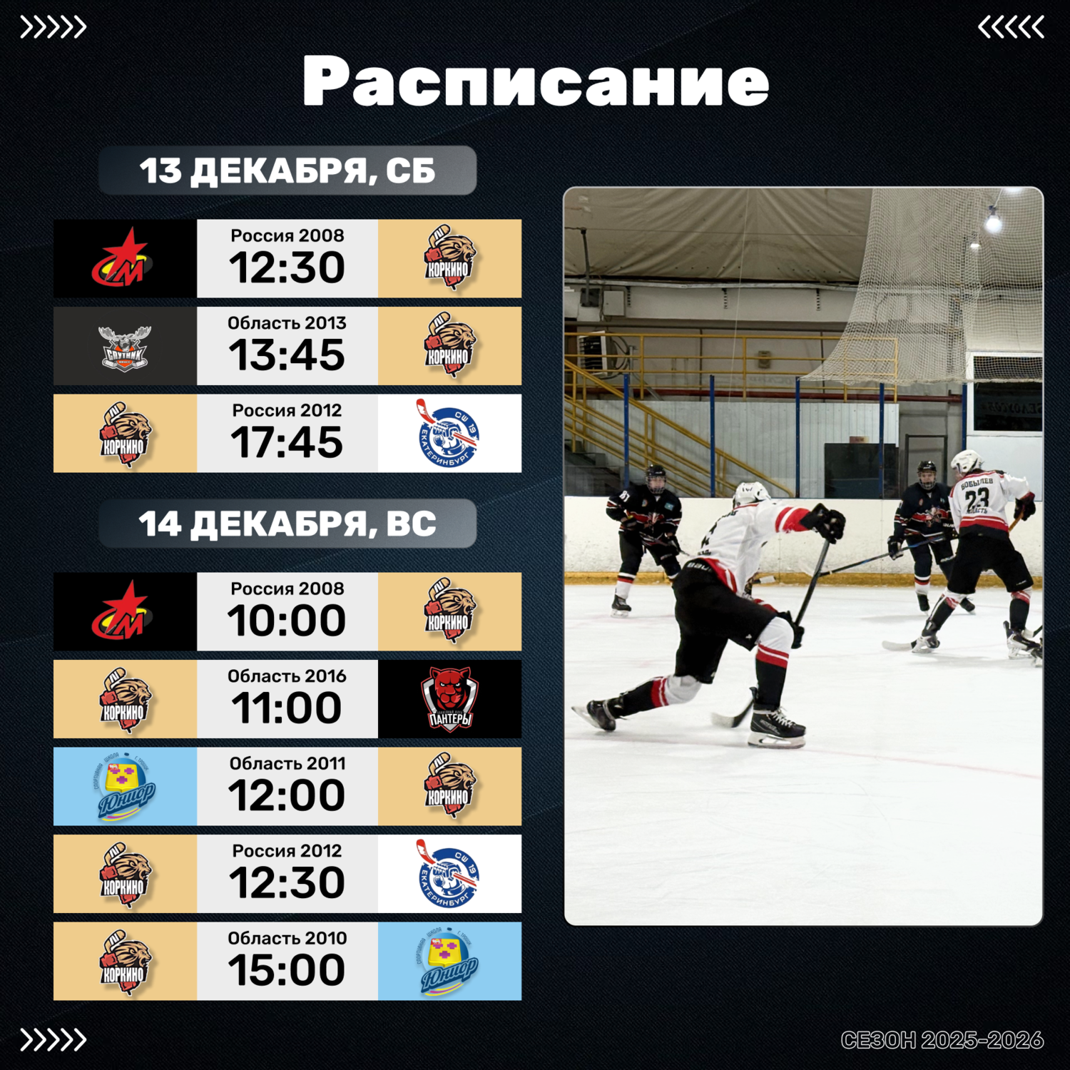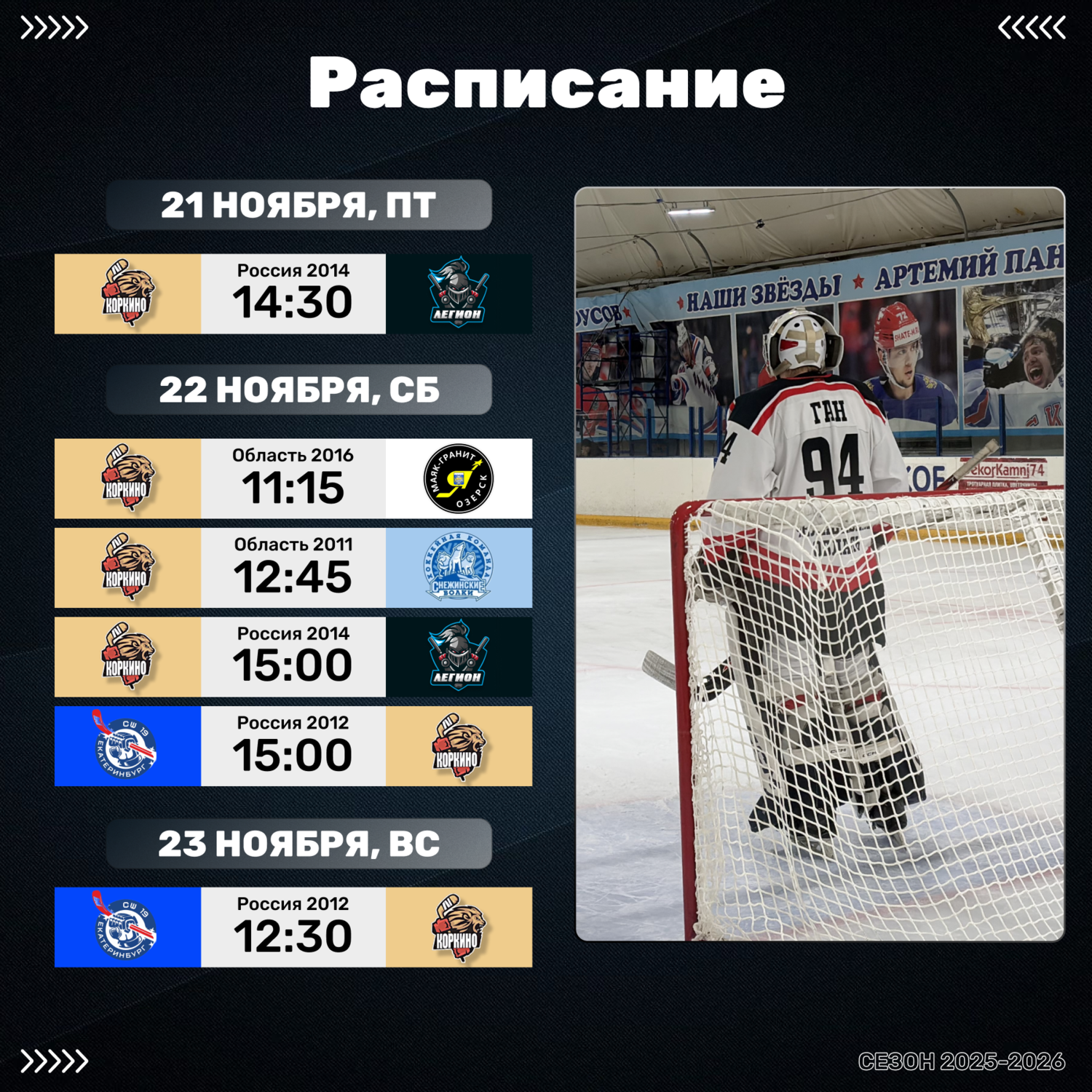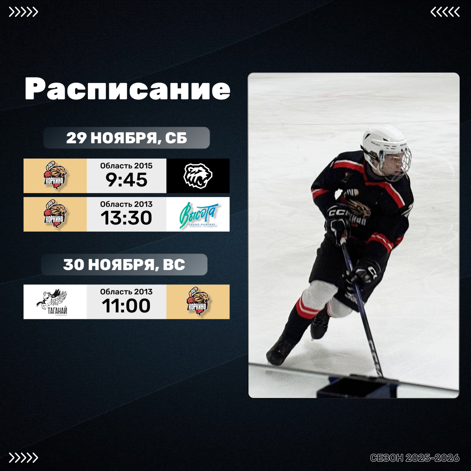 29 ноября домашние матчи проведут "Коркино 2015" против "Белых медведей 2016" из Челябинска, а так же 2013 год рождения встретится с командой из Озерска "Высотой 2013".